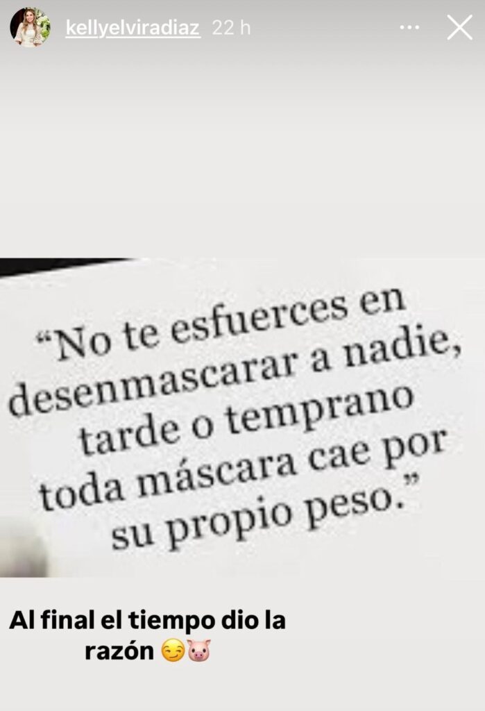 Kelly Elvira Díaz, una de las hijas de Diomedes Díaz lanzó una indirecta en sus redes sociales: “Al final el tiempo dio la razón”, escribió en su cuenta de Instagram al compartir una reflexión sobre la tradición y deslealtad.